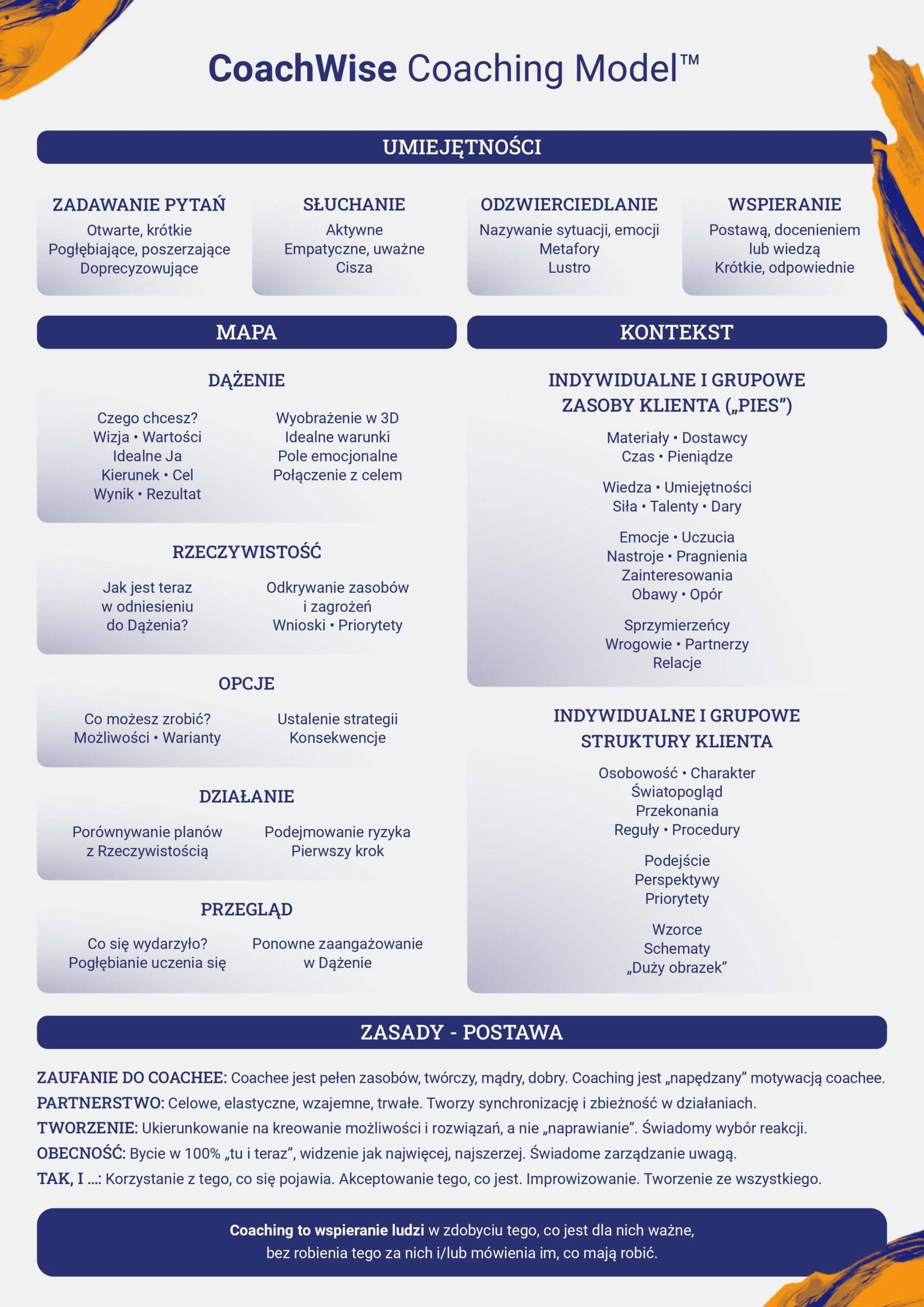 Takie połączenie łatwo dostrzec można w Modelu CoachWise™, który opisuje i obejmuje cztery aspekty współpracy z coachee: